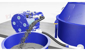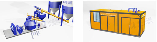 攪拌均勻成品通過合肥華運機械專利軟管泵排出,該泵尤其適合于高黏度,高固含量物料的輸送,具有出口壓力大、輸送距離遠、使用成本低等優點,是連續攪拌站的專用泵。